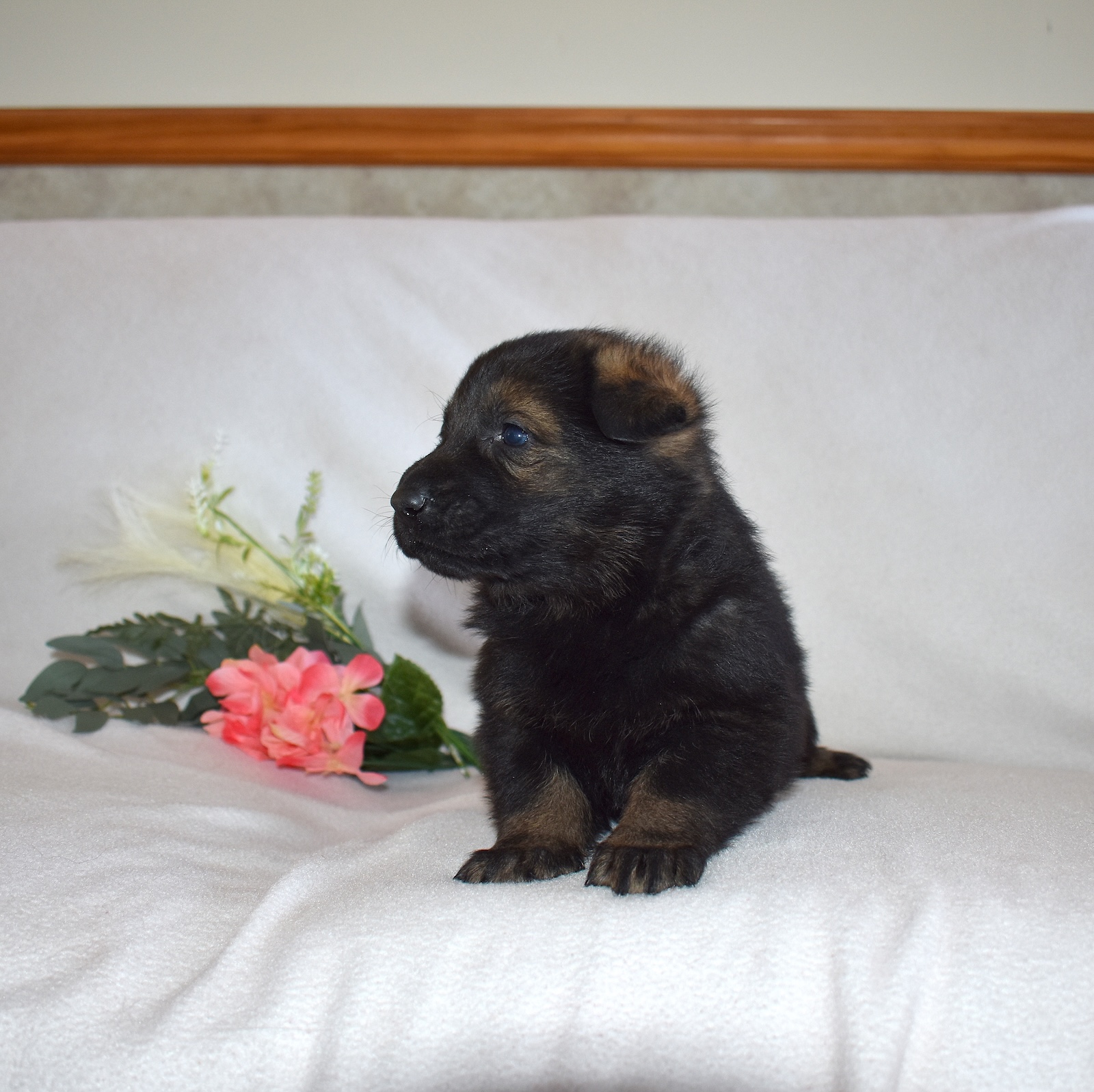 Sheriff is a handsome bicolor male German Shepherd puppy with a striking coat and tan accents that give him that classic, confident look. He is AKC registered with a strong bloodline, built on generations of intelligence, structure, and working ability.