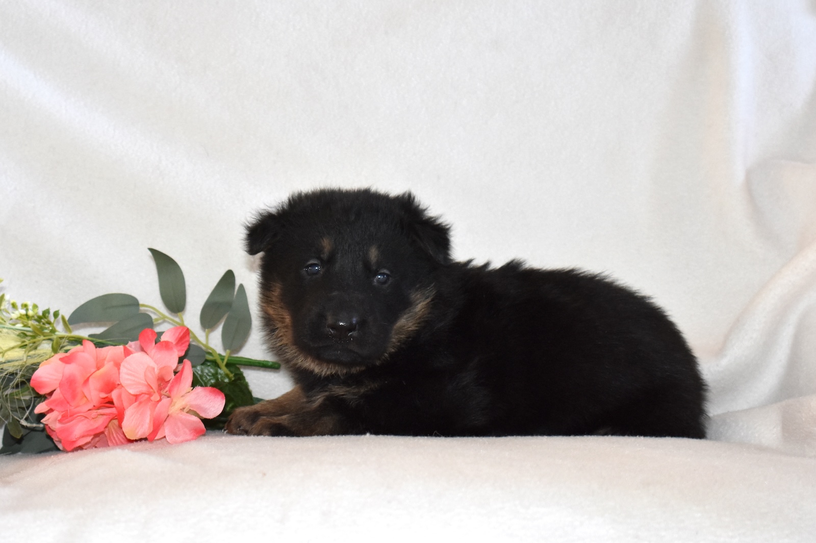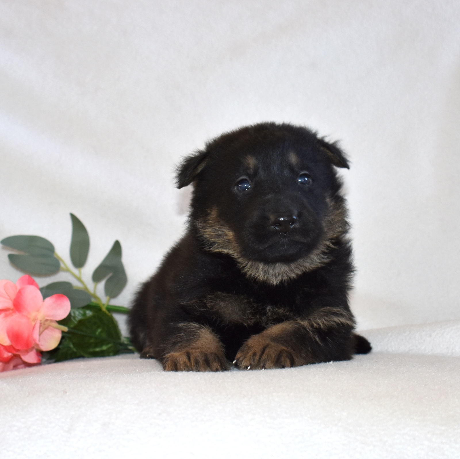 Smokey is a strong, handsome bicolor male German Shepherd puppy with a striking coat and tan accents that highlight his classic German Shepherd look. He is AKC registered and comes from a strong bloodline, featuring champion influence and authentic German working heritage.