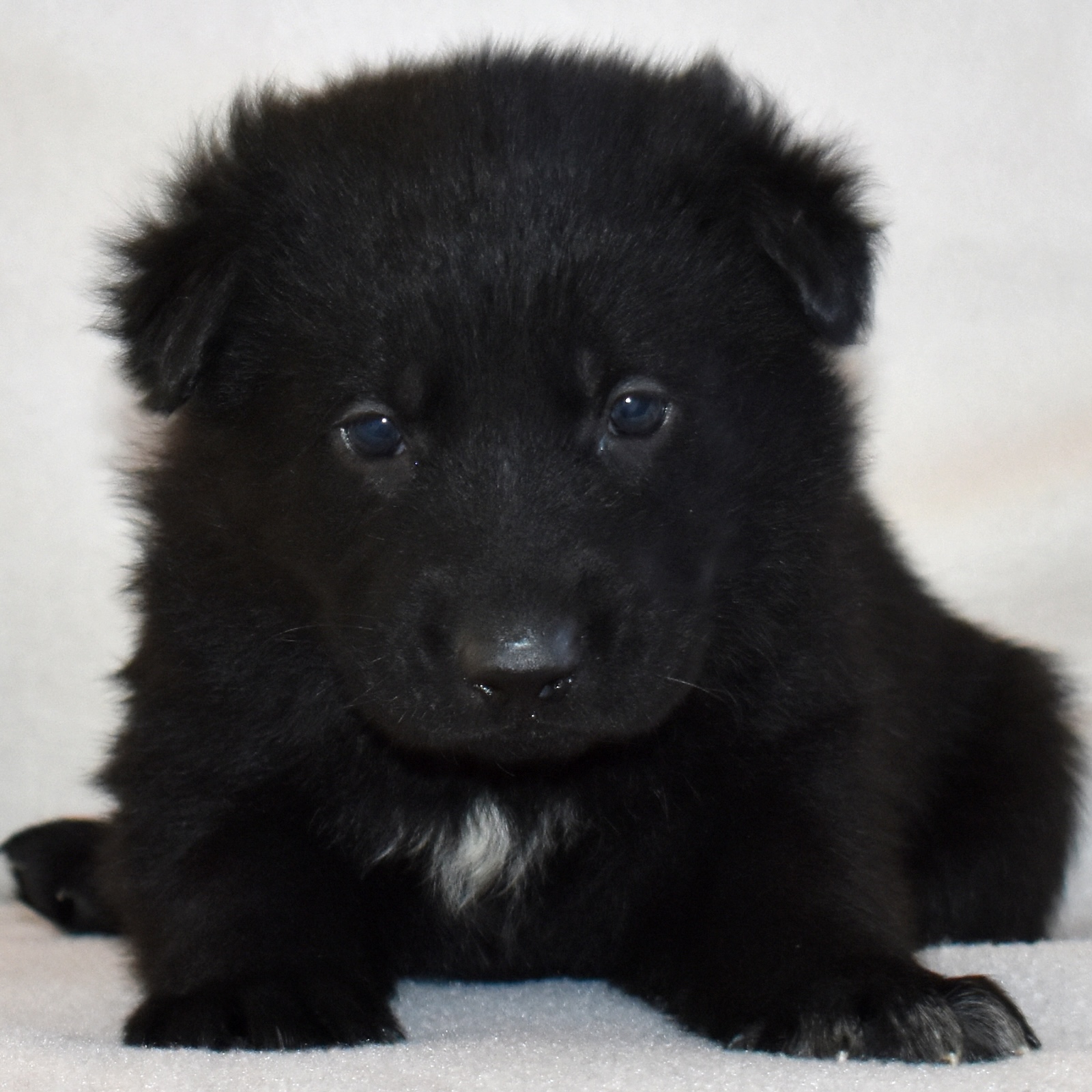 Shadow is a stunning all-black female German Shepherd puppy with a bold, striking coat that gives her a powerful and elegant presence. She is AKC registered and backed by a strong bloodline, including proven working heritage and quality structure through both parents.