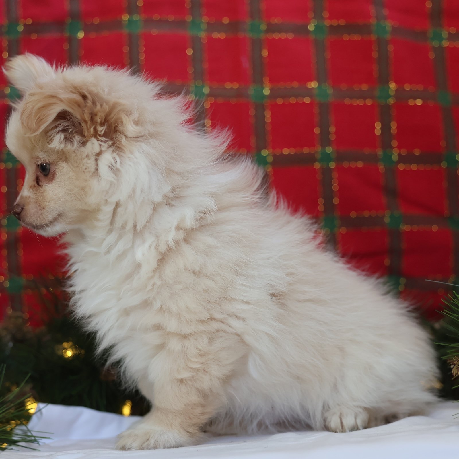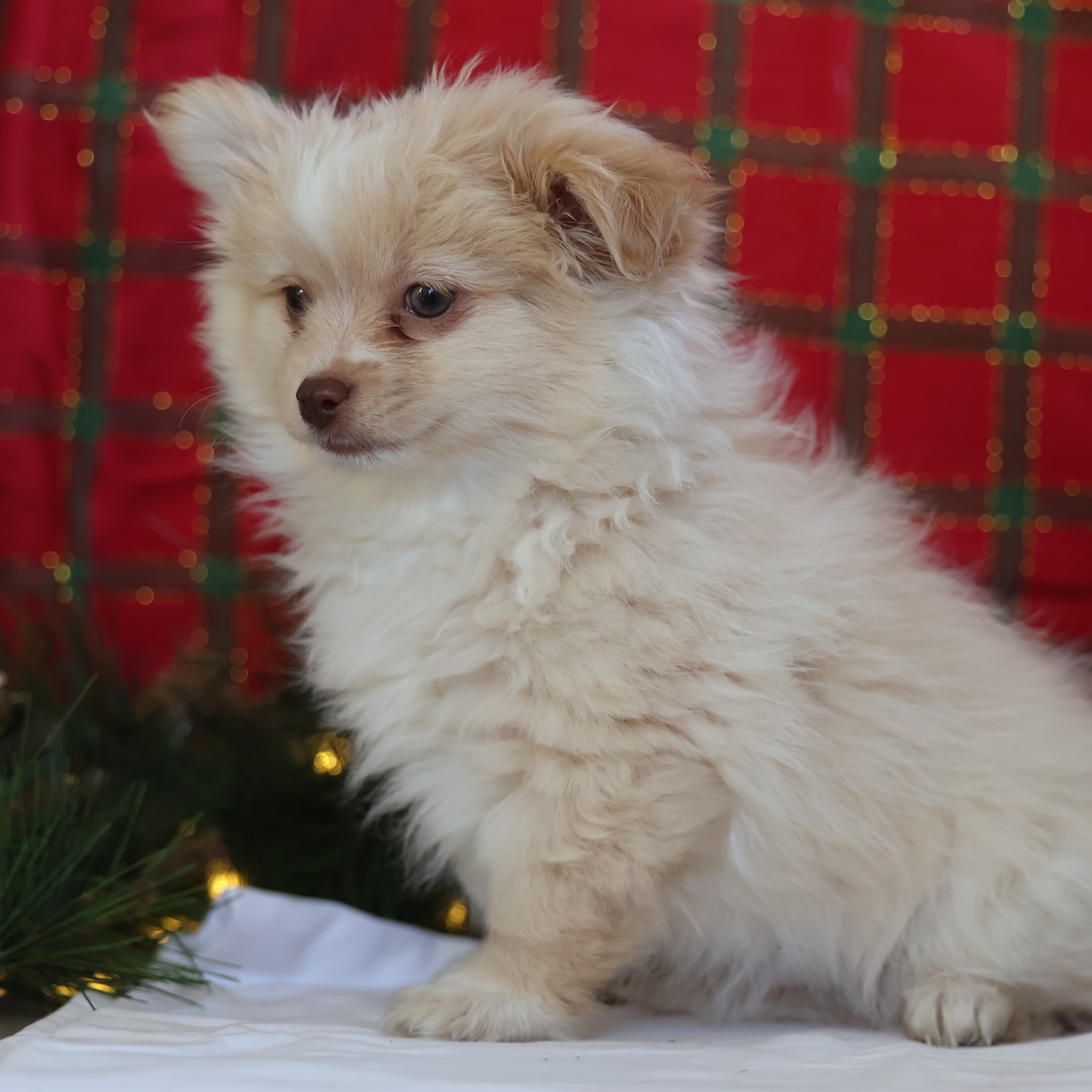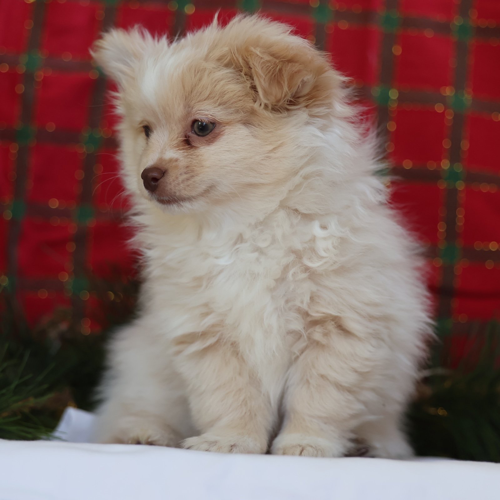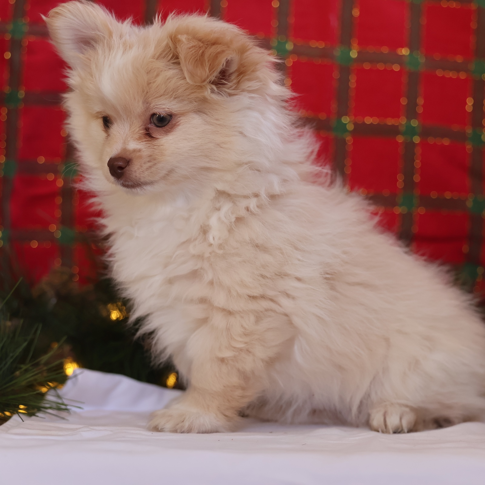 Kringle is your tiny Christmas miracle in a soft cream coat. He’s playful without being too wild, and affectionate without being clingy—basically the perfect mix for a joyful family companion. Kringle loves to explore, bounce after toys, and then fall asleep like a fuzzy ornament right beside you. His personality is cheerful and confident, the kind that brings smiles to everyone in the room. Whether he’s trotting around the tree or snuggling during movie night, Kringle makes every day feel like a celebration.