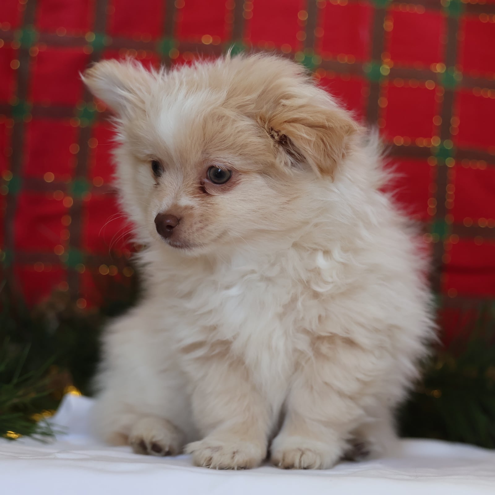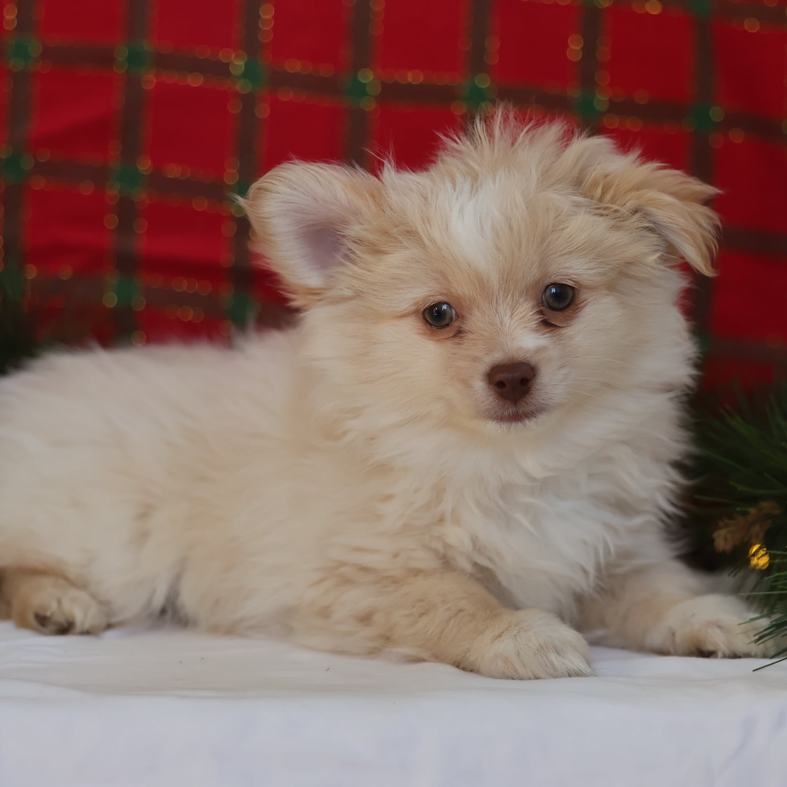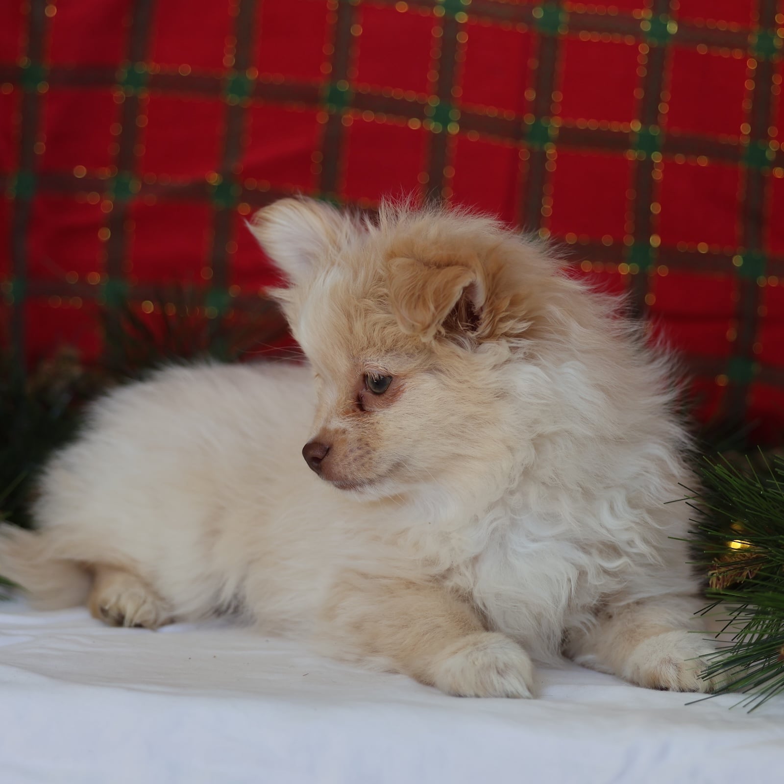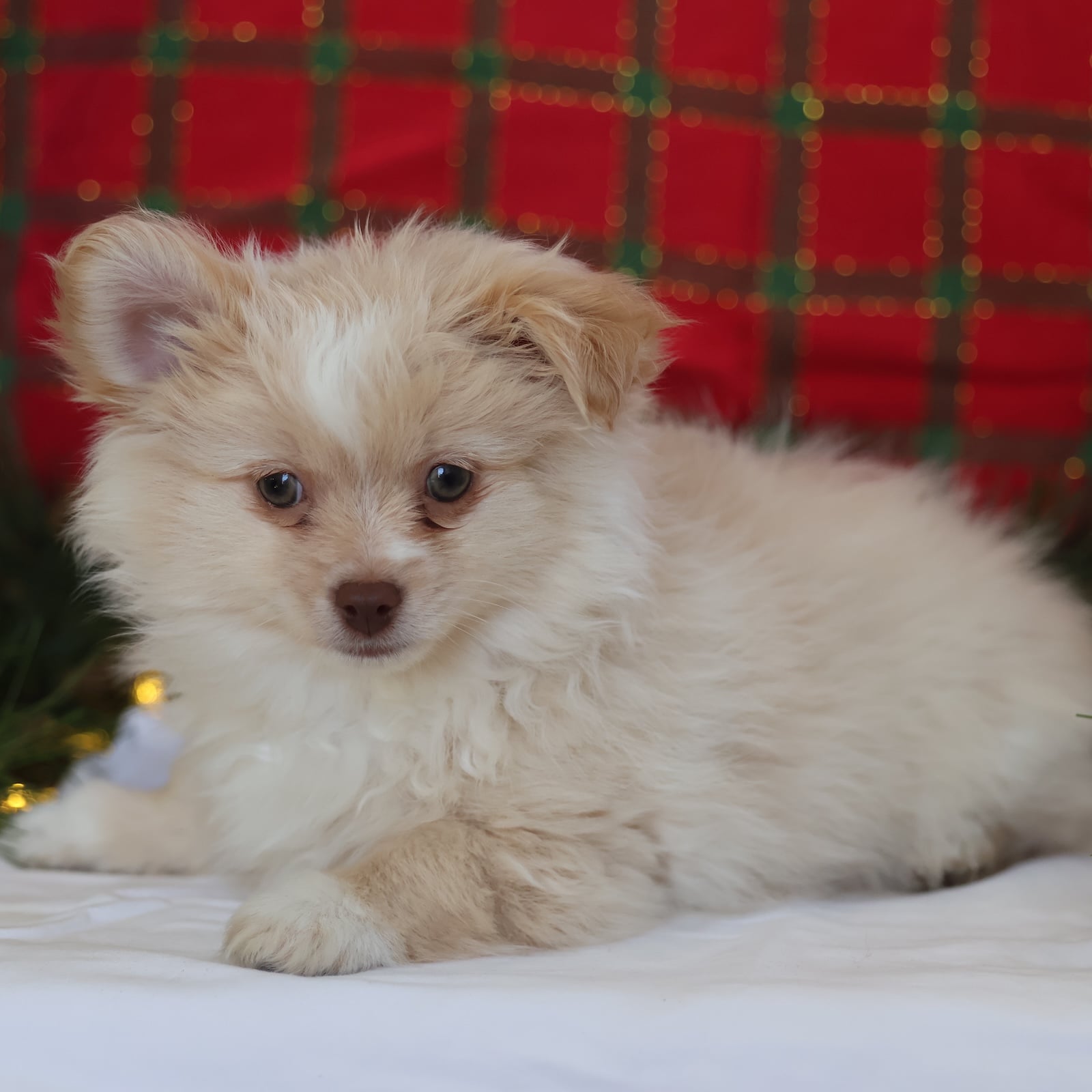 Kringle is your tiny Christmas miracle in a soft cream coat. He’s playful without being too wild, and affectionate without being clingy—basically the perfect mix for a joyful family companion. Kringle loves to explore, bounce after toys, and then fall asleep like a fuzzy ornament right beside you. His personality is cheerful and confident, the kind that brings smiles to everyone in the room. Whether he’s trotting around the tree or snuggling during movie night, Kringle makes every day feel like a celebration.