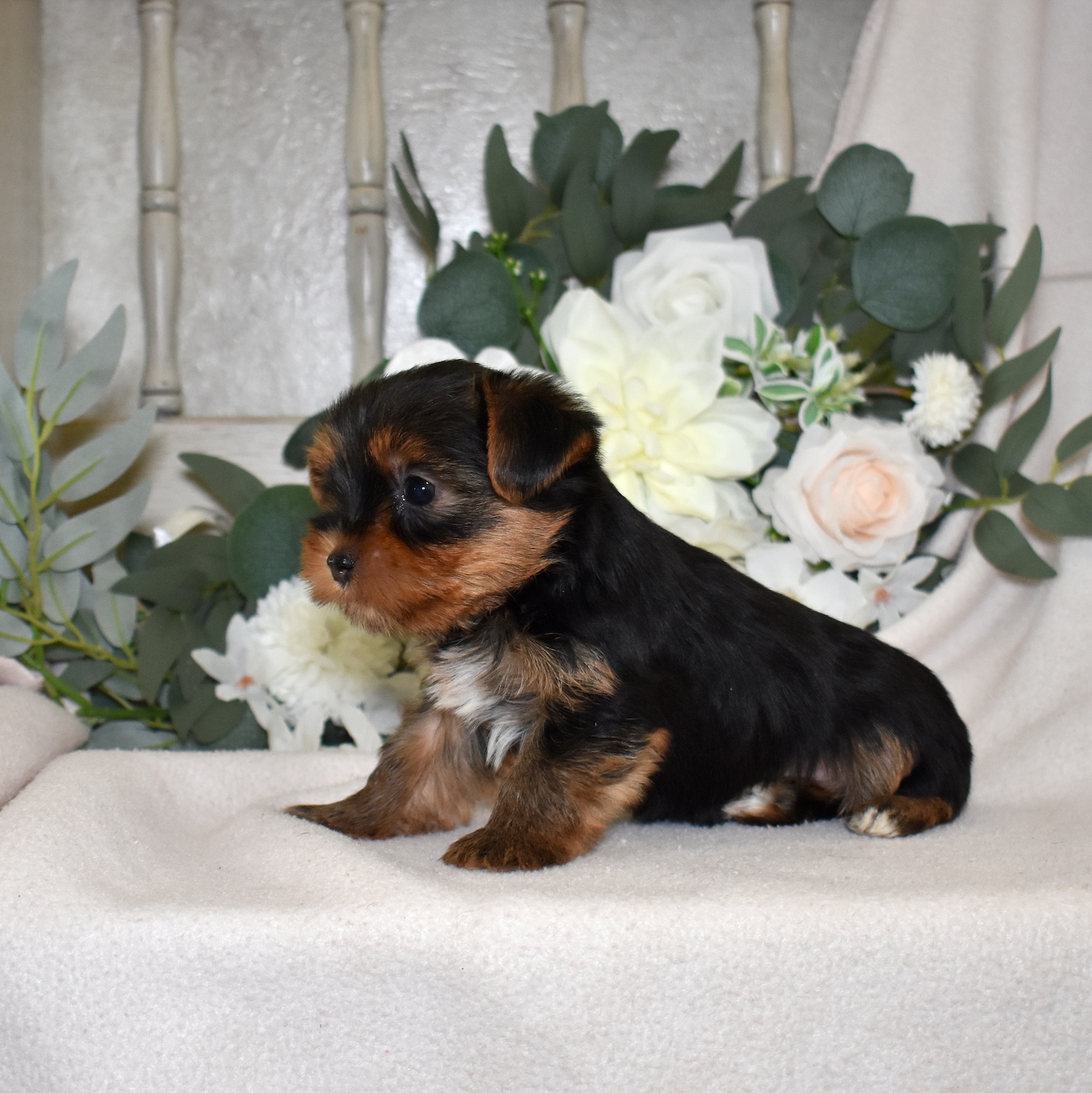 Harley Jr is a lively male Yorkie bursting with personality and confidence. Yorkshire Terriers are known for their bold attitudes, and Harley Jr embraces that trait wholeheartedly. He is playful, curious, and always eager to engage with his surroundings. His energetic nature makes him a great fit for someone who enjoys an interactive puppy with a fun-loving spirit.