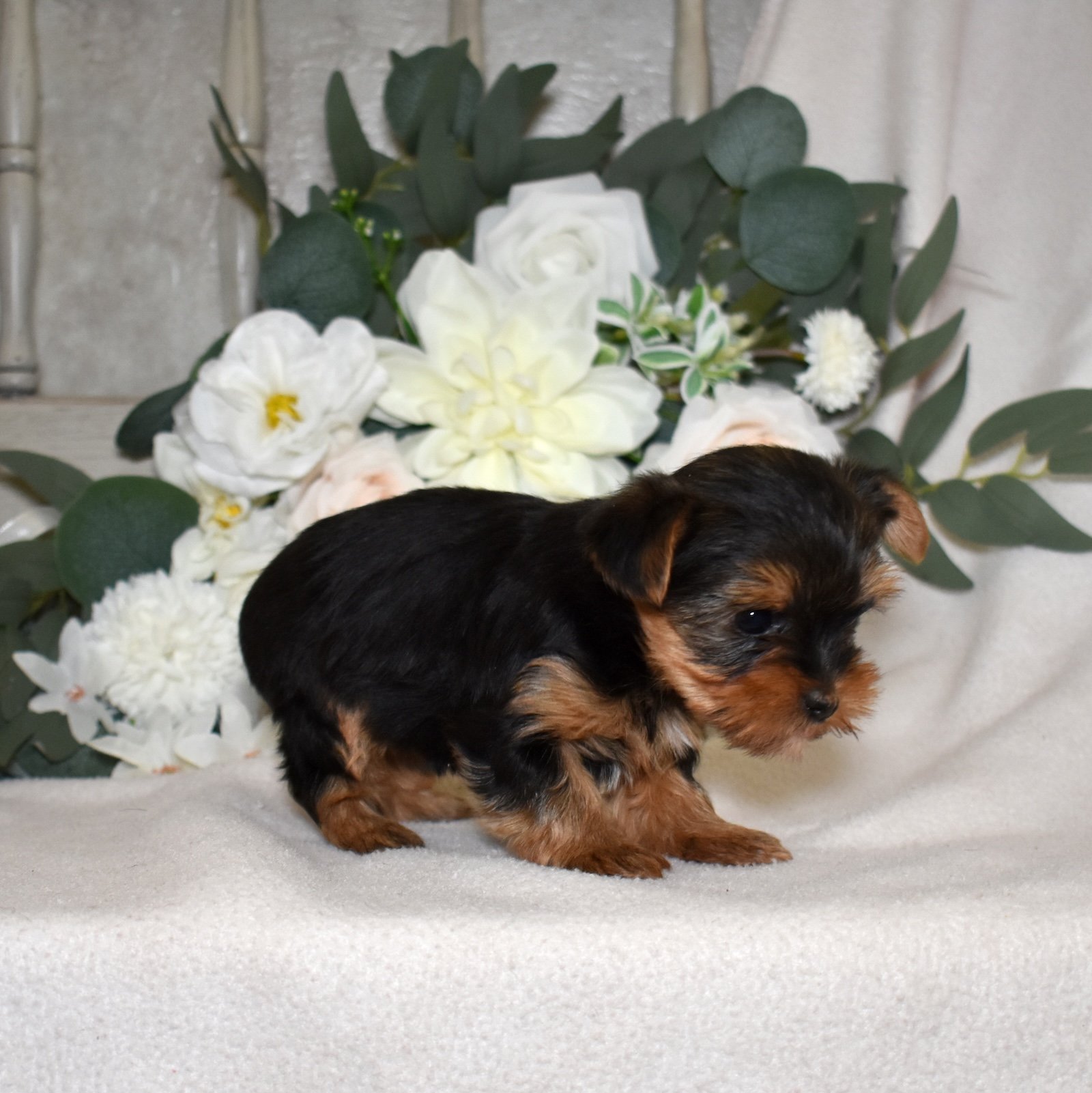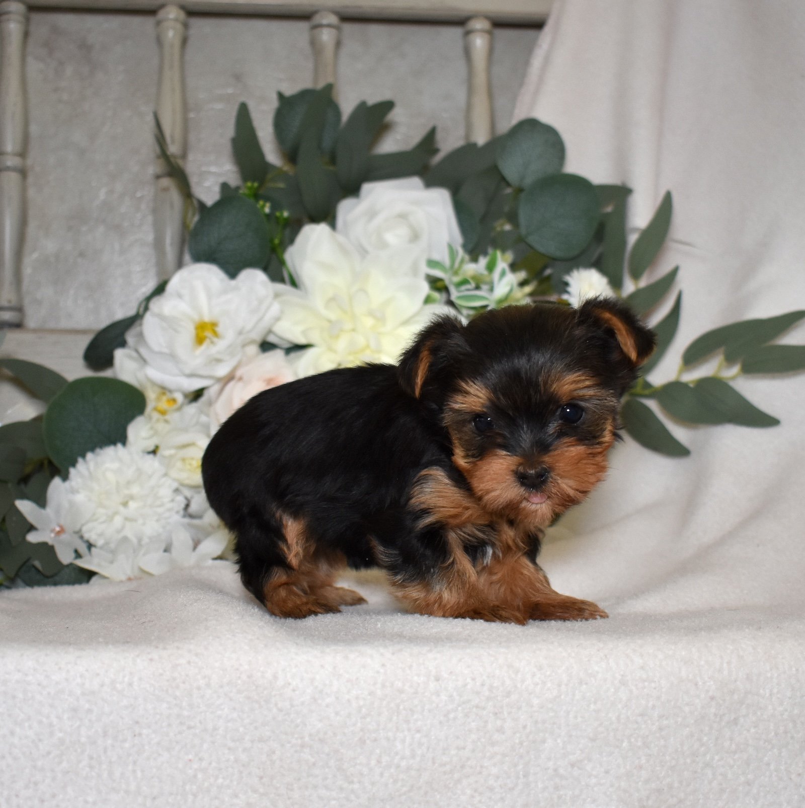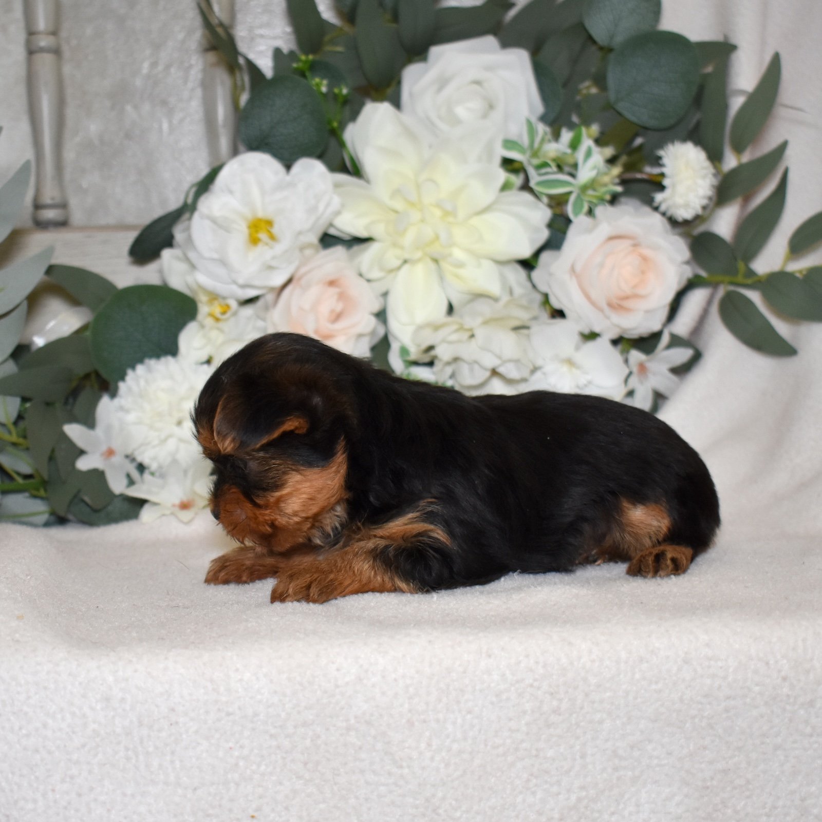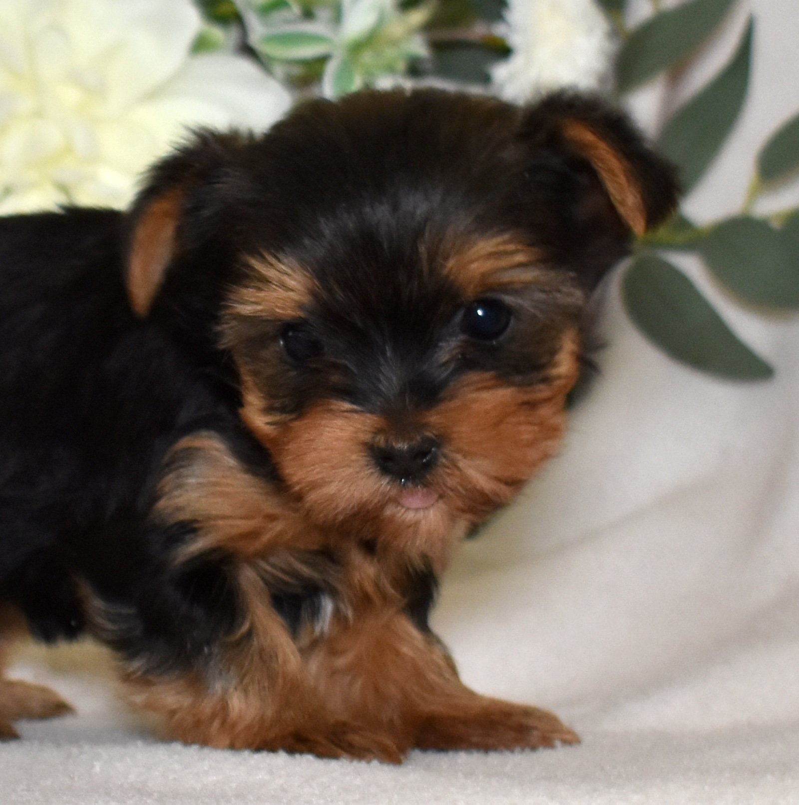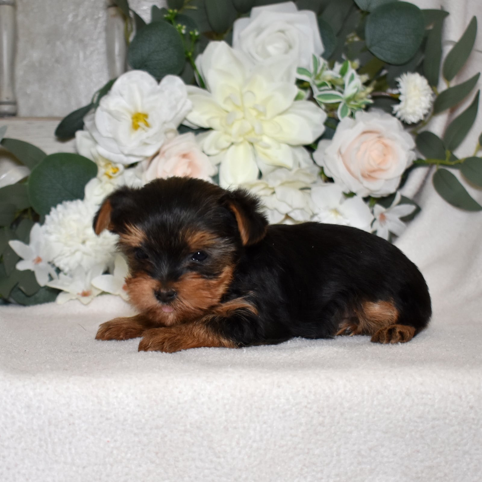 Hope also carries the classic Yorkie confidence, just in a softer, more graceful way. She enjoys playtime but is equally happy relaxing in your lap or following you quietly throughout the day. Her affectionate nature makes her ideal for families, couples, or individuals looking for a loving, loyal puppy. With her combination of sweetness, intelligence, and Yorkie charm, Hope is sure to grow into a devoted companion who brings comfort, joy, and endless love to her future home.