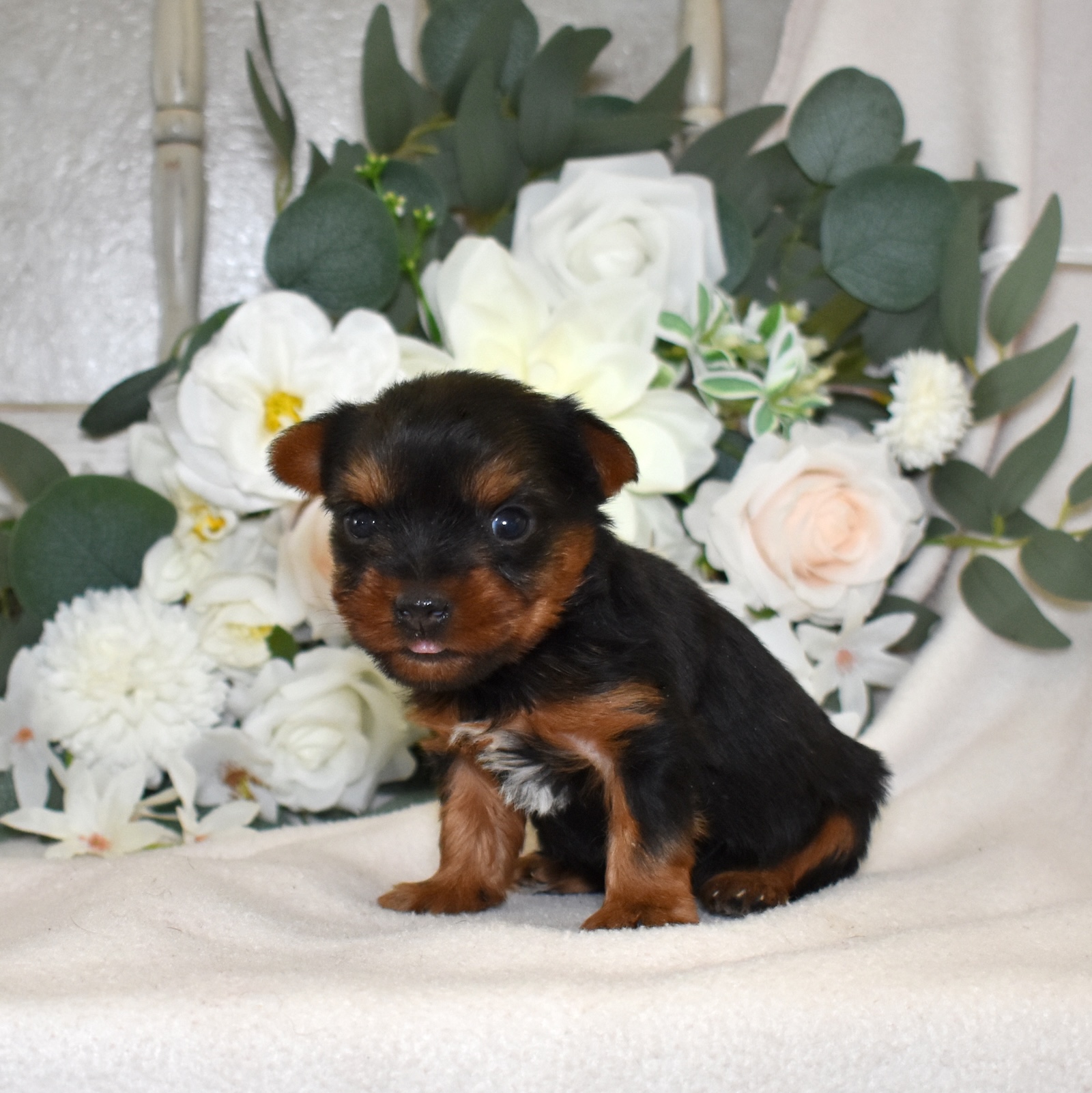 Rusty is a handsome male Yorkie with a bold spirit and a heart full of loyalty. Like many Yorkshire Terriers, Rusty carries himself with confidence well beyond his small size. He is alert, curious, and always ready to explore his surroundings, making him an ideal companion for someone who loves an engaged and lively puppy. Yorkies are known for their intelligence, and Rusty already shows how quickly he learns new routines and responds to attention.